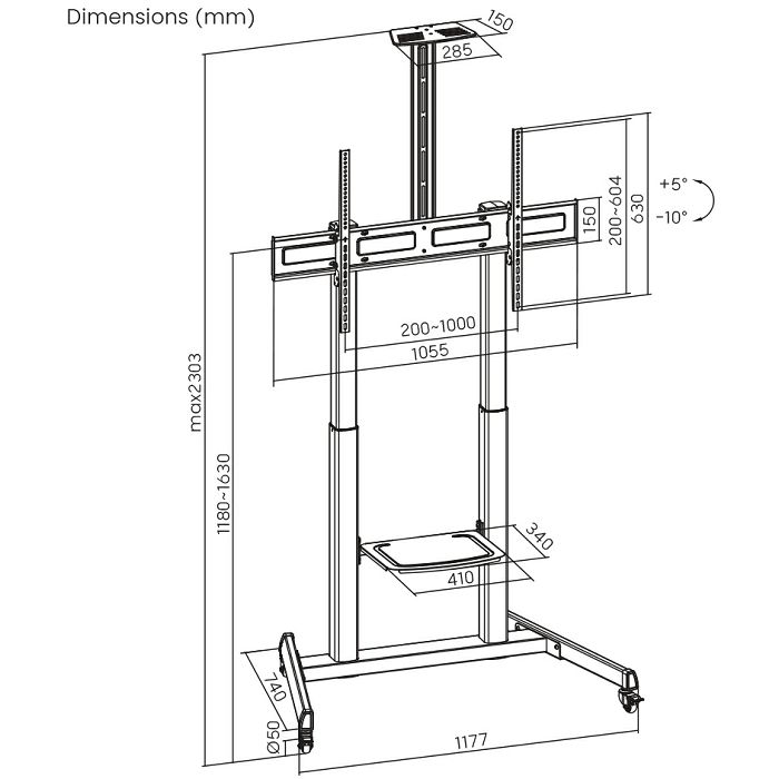 Roline zidni nosač za monitor, 5 spojeva, nosivost 25kg, crni