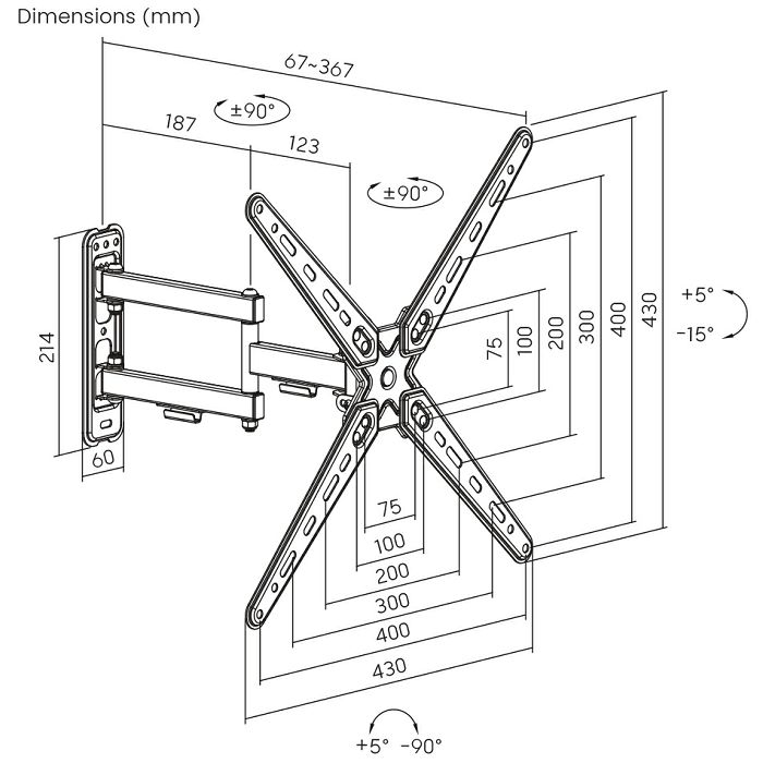 Transmedia Flat Screen Monitor (25-76cm) Wall Mount, Black