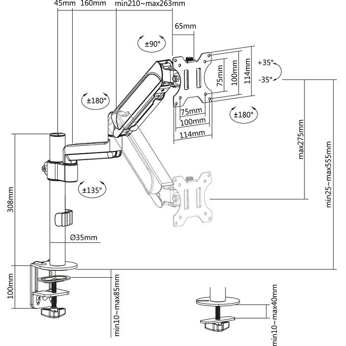BIT FORCE stolna ručka za monitor s plinskom oprugom BRACKET DMG-32-1M