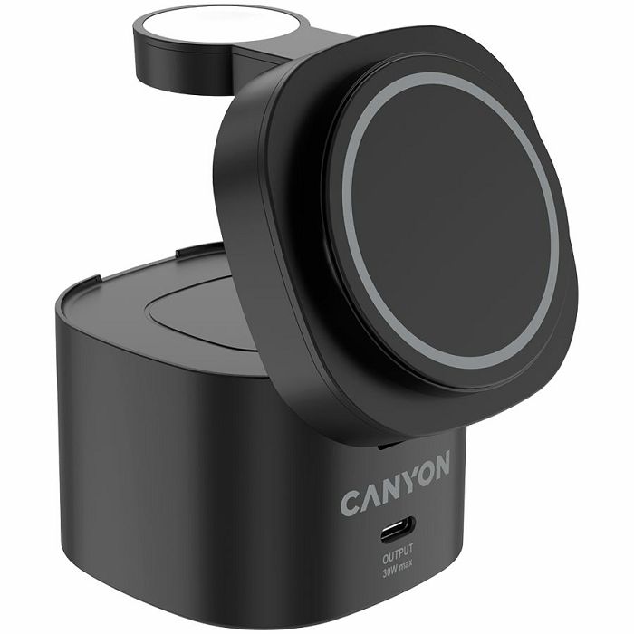 Canyon 4 in 1 Wireless Charging Stand, 30W max, Size: 70x70x70.3mm, weight: 414g, with 65W charger and 1M cable, black