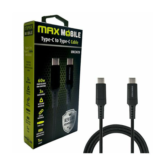 MAXMOBILE DATA KABEL TYPE C-TYPE C UDC3028 KEVLAR BLACK QC 3A 1m