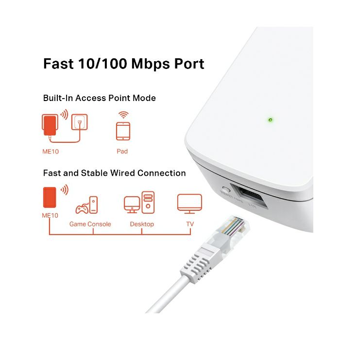 Mercusys ME10 bežični pojačivač dometa (Range Extender) 300Mbps (2.4GH), IEEE 802.11b/g/n 2.4 GHz, 1×LAN,