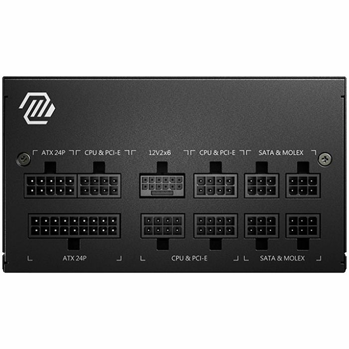 MSI PSU MAG A850GL PCIE5 II, 850W 80Plus Gold, 120mm Fan Active PFC, Fully Modular, 12VHPWR, ATX 3.1, PCIe 5.1, OVP, OCP, OTP, OPP, SCP, UVP, 100-240Vac, 47Hz-63Hz Input Frequency, ATX, 7Y, Black
