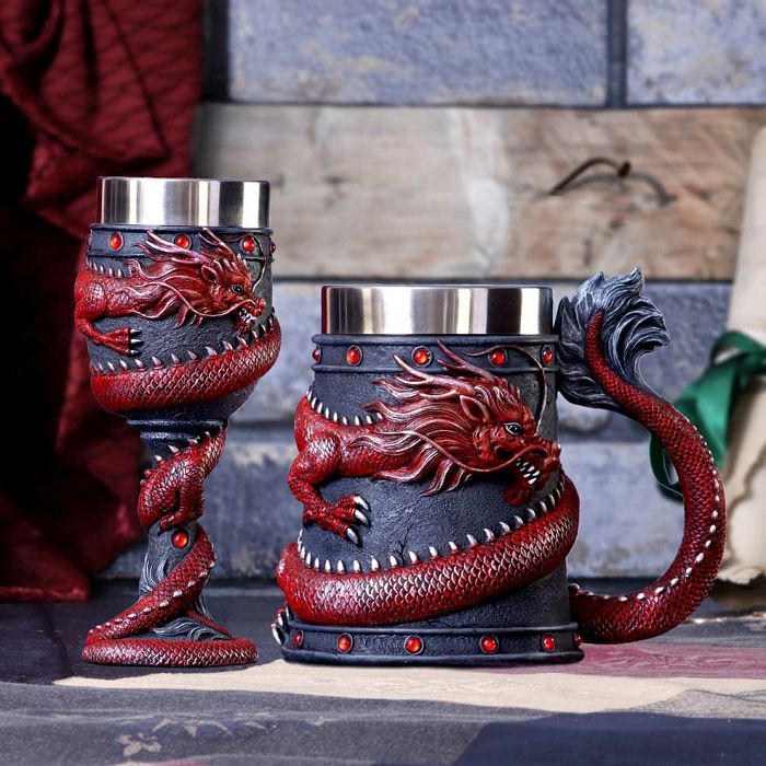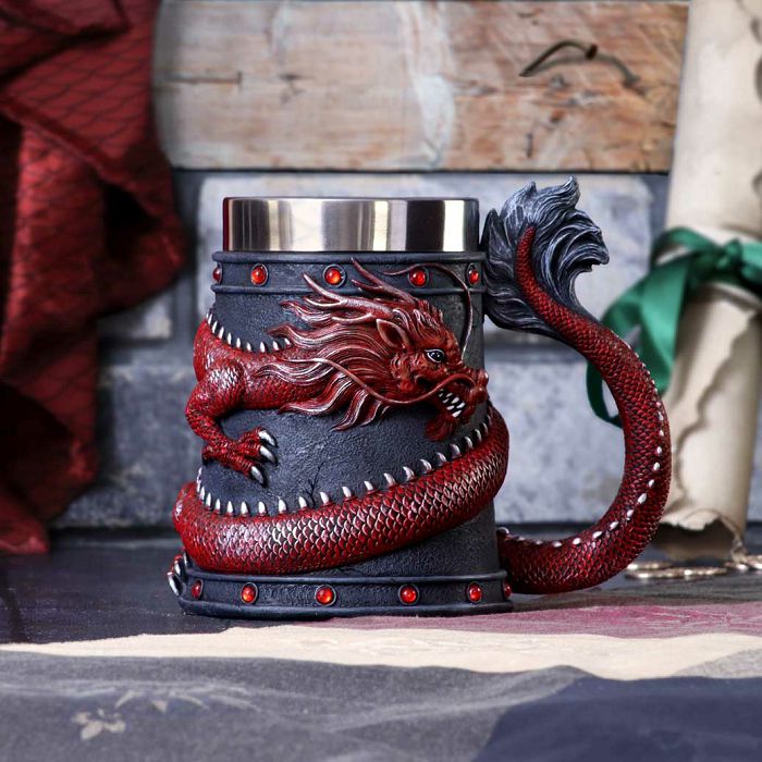 NEMESIS NOW DRAGON COIL TANKARD RED 16CM - 801269146139