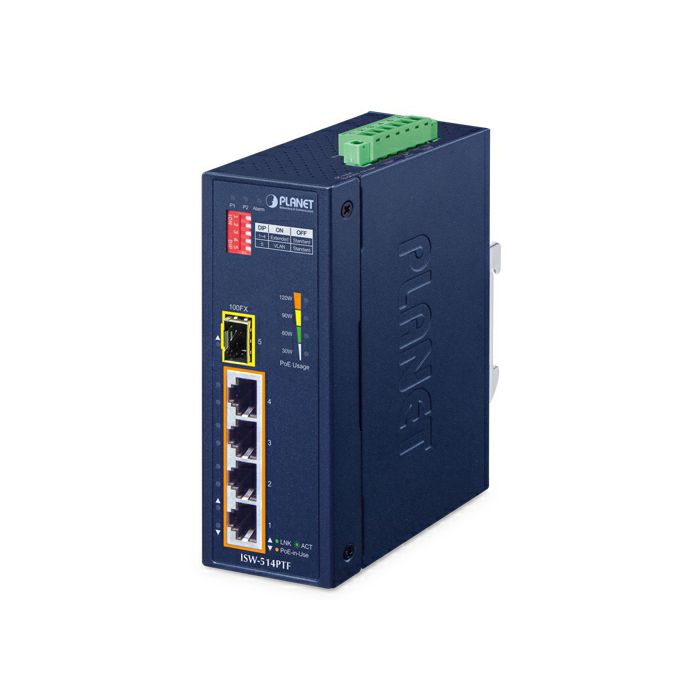 PLANET IP40 4-Port 10/100TX 802.3at PoE + 1-Port 100FX SFP Industrial Fast Ethernet Switch