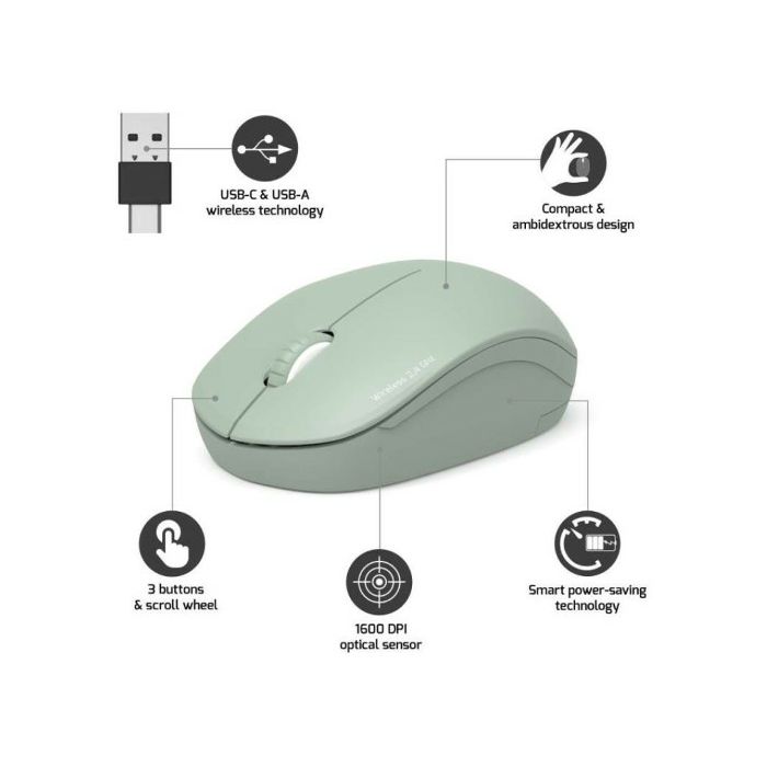 Port miš OFFICE WL USB-A/C, bežični, zelen 900543