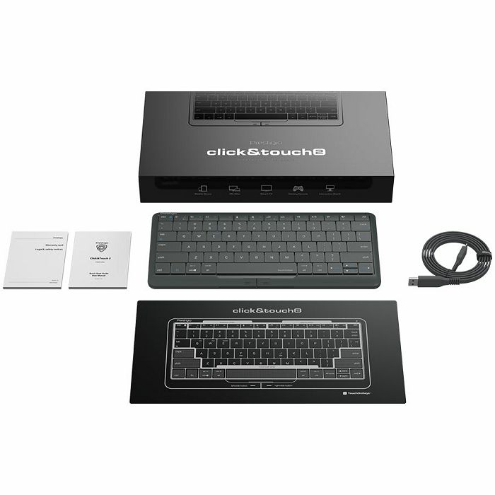 Prestigio Click&Touch 2, wireless multimedia smart keyboard with touchpad embedded into keys, auto-switch between keyboard and touchpad modes, touch multimedia sliders, left and right physical "mouse"