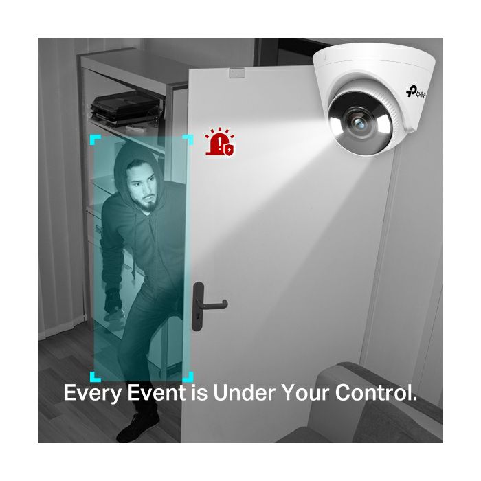 TP-LINK 4MP Full-Color Turret Net, H.265+/H.265/H.264+/H.264, 1/3" Progressive Scan CMOS, Color/0.04 Lux@F1.6, 0 Lux with IR/White Light, 25fps/30fps ( 2560x1440,2304x1296, 2048x1280, 1920x1080), PoE