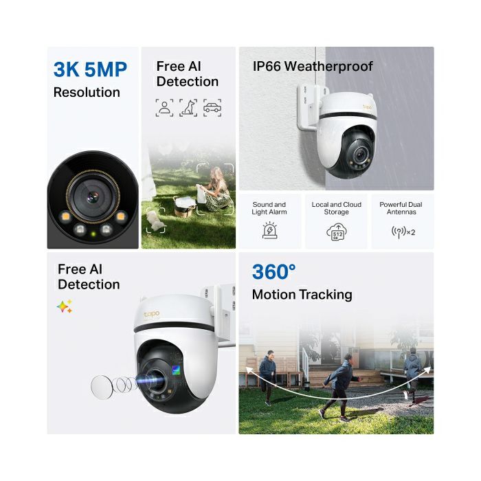 TP-Link Tapo C530WS kamera 3K 5MP(2880×1620) H.264, 360° /130° Pan/Tilt, Starlight-Color Night Vision, microSD, dvosmjerni audio, detekcija pokreta, vodootporna IP66, Wi-Fi, Tapo app