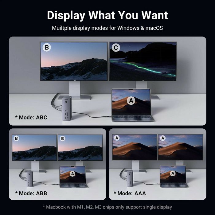 UGREEN Revodok Max 13u1, DisplayPort, Thunderbolt 4, USB-C, RJ45, čitač kartica TF/SD, 3.5mm