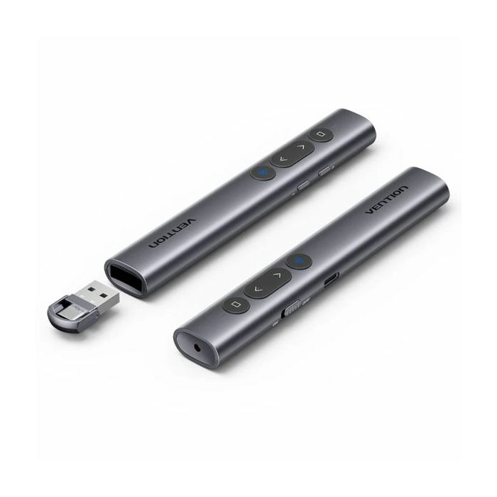 Vention Wireless PowerPoint Presentation Clicker with Green Laser Pointer, Rechargable – Gray